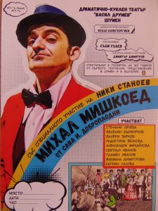 Първо на 16 август в 18.30 часа ще бъде издигната хоругвата на театъра и ще бъде запален театралният огън. След това от 19.00 часа в салона на ДКТ “Васил Друмев” ще бъде представен спектакълът „Михал Мишкоед“ от Сава Доброплодни. Постановката е на Съби Събев, а драматургичният вариант е дело на Кольо Карагеоргиев. Сценичната визия и костюми са на Димитър Димитров. В главната роля на Михал ще се превъплъти популярният актьор Николай Станоев. Той ще си партнира с част от трупата на шуменския театър – Стефани Лечева, Веселин Бърборков, Валери Зарков, Радостина Велкова, Александра Михайлова, Светльо Иванов, Пламен Иванов, Вилиана Димитрова и Катрин Лалова. Представлението е главно събитие в програмата, посветена на 165 години театър в Шумен и България и се осъществява с финансовата подкрепа на Община Шумен.