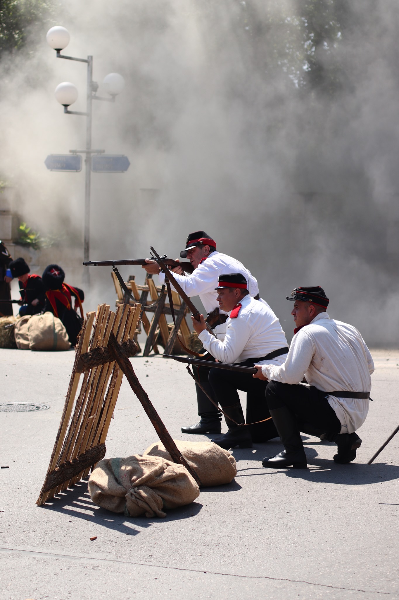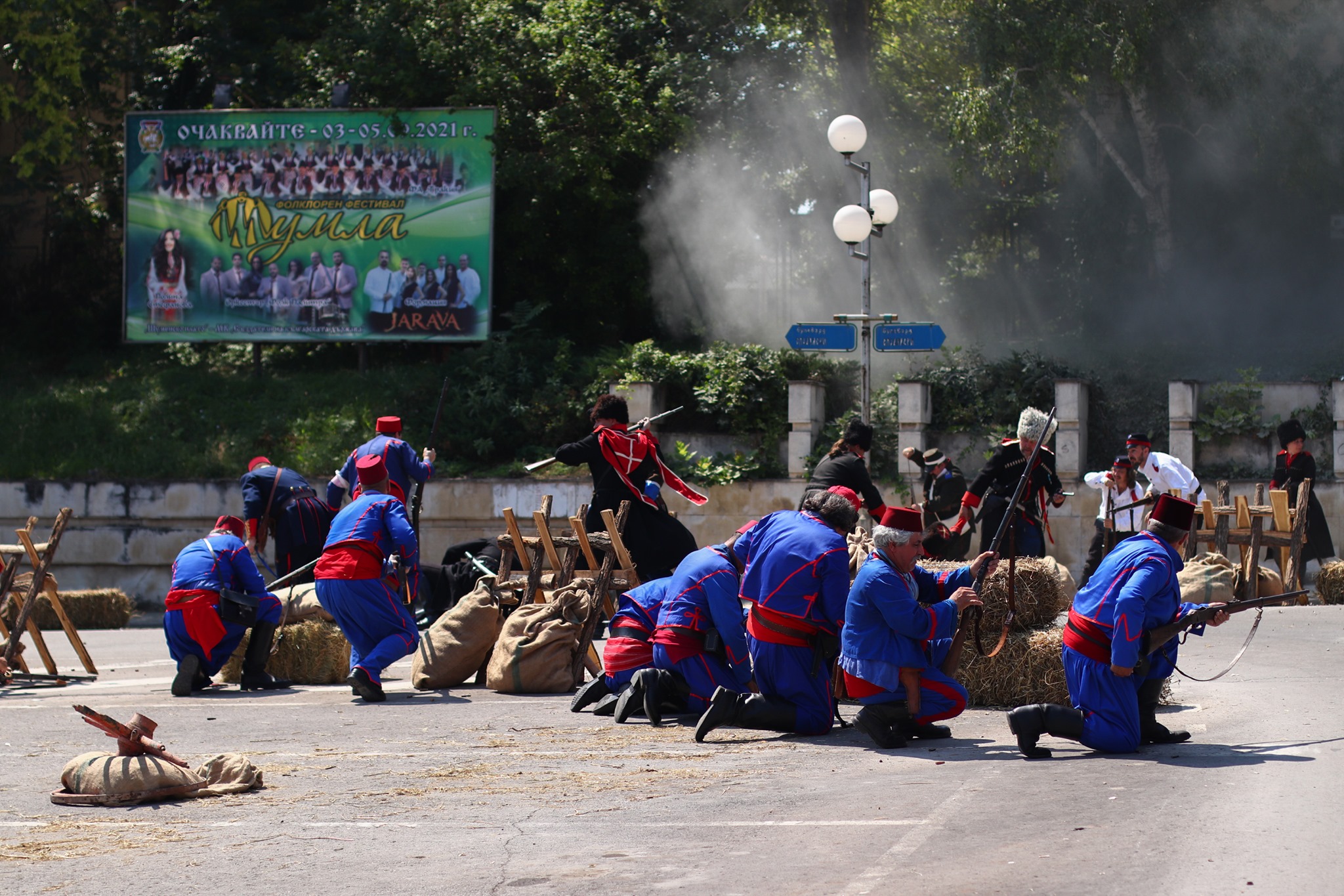 От 11.00 часа днес площад „Кристал“ се превърна в сцена, на която оживяха събития от Руско-турската война от 1877-1878 г. Над 100 души, членове на патриотични клубове от Шумен, Велики Преслав, София, Добрич, Варна, Търговище и Ямбол пресъздадоха сблъсъка между руски разузнавателен отряд и турския караул в околностите на Шумен – най-голямата крепост в европейската част на османската империя тогава, преговорите и подписването на Санстефанския мирен договор между Русия и Османската империя на 3 март 1878 г.