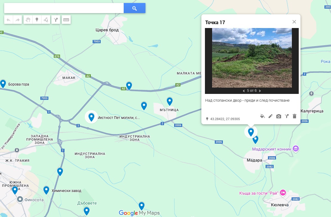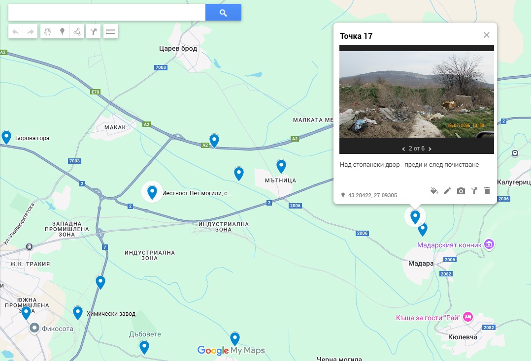 Община Шумен изготви карта на нерегламентираните сметища със снимки на завареното състояние и след почистването на локациите: