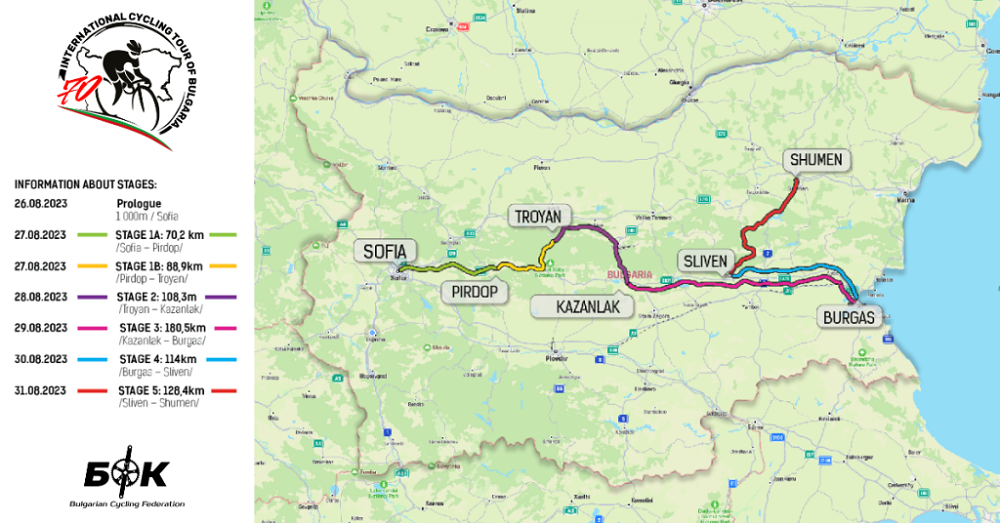 Състезанието ще стартира на 26-ти август в София и за първи път в своята история ще финишира в Шумен на 31-ви август. Ще бъдат изминати общо около 705 състезателни километра, които са разпределени в пролог, 2 полу етапа и 4 етапа с общ старт. Последният етап е Сливен – Шумен и е с дължина 128,4км.