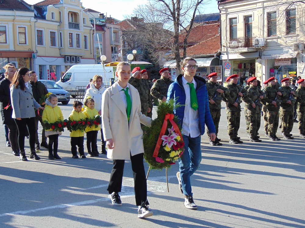 На ритуала присъстваха кметът Любомир Христов, председателят на Общинския съвет Ася Аспарухова, зам.-кметовете Росица Антонова, Найден Косев и Боян Тодоров, зам.-областният управител Христо Павлов, зам.-ректорът на ШУ „Еп. Константин Преславски“ проф. Чавдар Сотиров, представители на политически, военни, обществени организации и граждани.