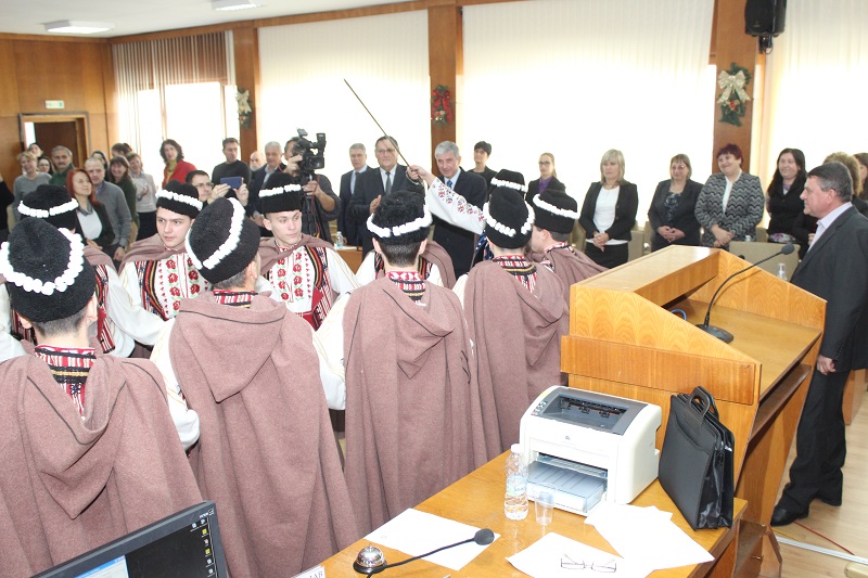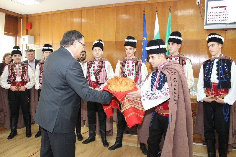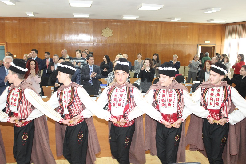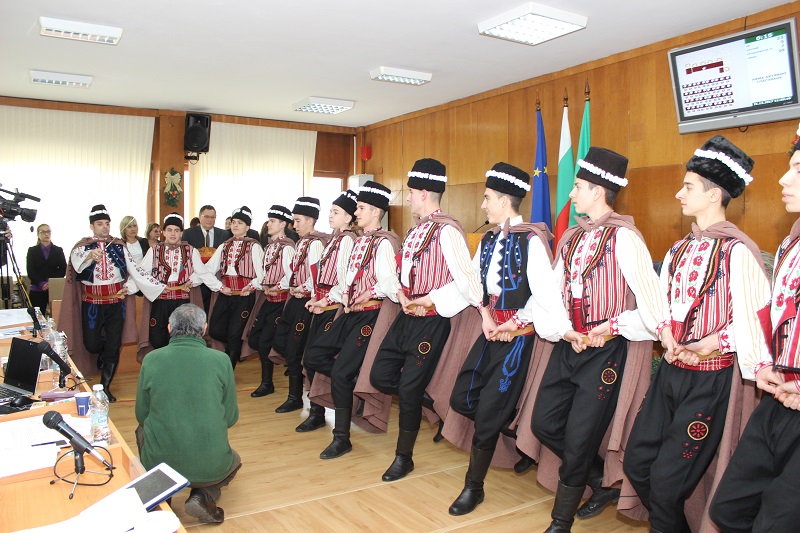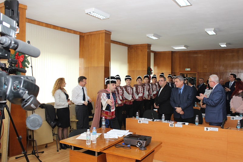 Коледари от ансамбъл „Мадара“ наричаха за здраве и берекет в на община Шумен. Танцьори от ансамбъла поздравиха днес шуменските общински съветници по време на редовното месечно заседание на Общинския съвет и отправиха своите пожелания за успех и благоденствие през новата година с традиционни коледарски песни. Кметът Любомир Христов поздрави участниците в групата. В навечерието на Коледа и Нова година той пожела на всички здраве, щастие и късмет, а на танцьорите да бъдат все така енергични и да продължават да пазят българските традиции. “Нека новата 2018-та година да е мирна и още по-успешна за цялата община”, каза Христов и заедно с председателя на Общинския съвет проф. Борислав Беджев почерпиха с традиционната коледна питка.