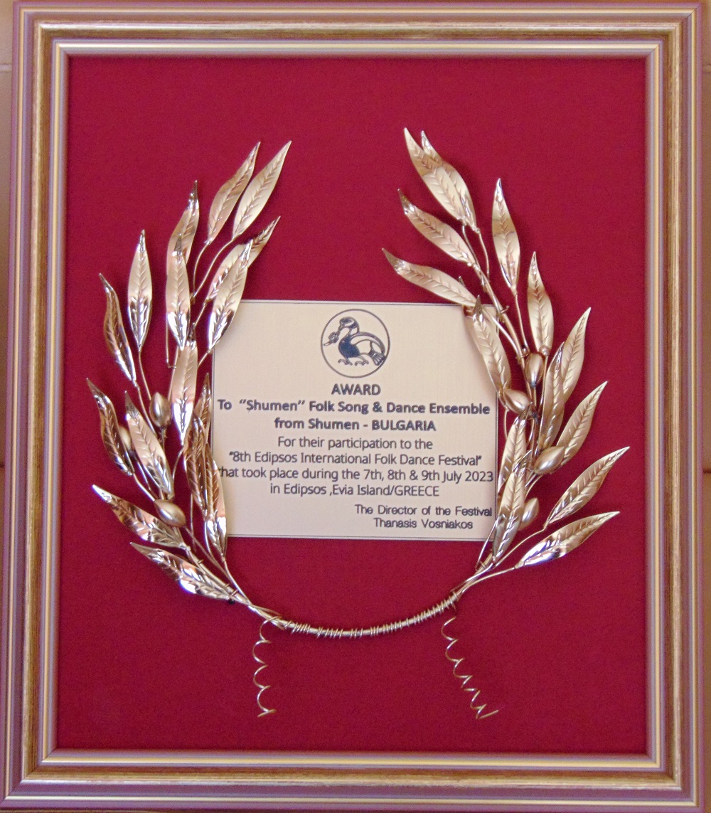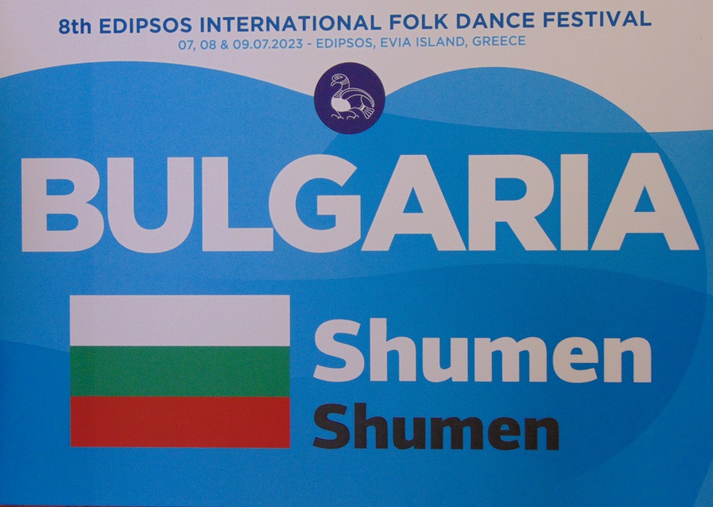Ансамбълът на народни песни и танци „Шумен“ с главен художествен ръководител доц. д-р Катя Кайрякова се завърна от участие в осмото издание на Международния фолклорен фестивал, който се проведе в град Едипсос на красивия гръцки остров Евия. Фестивалът няма конкурсен характер и се провежда като празник на традиционната култура.