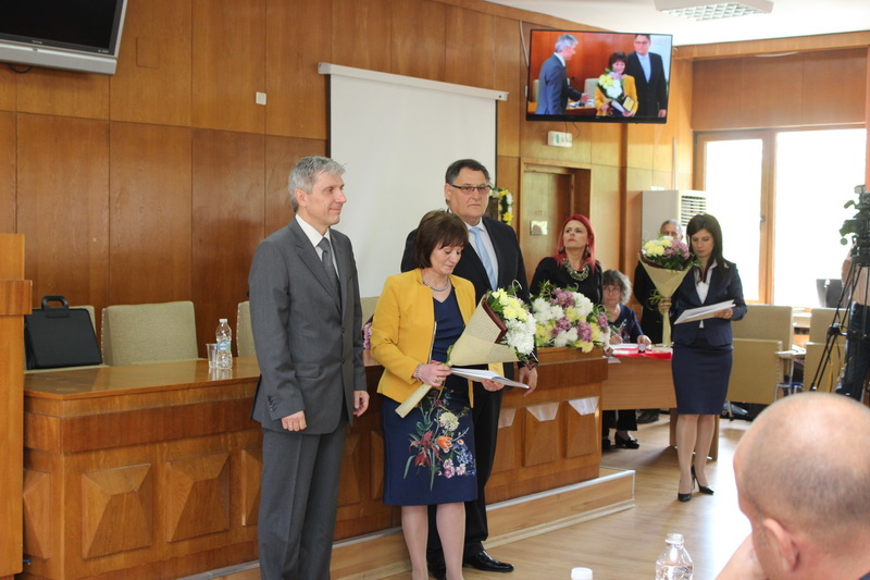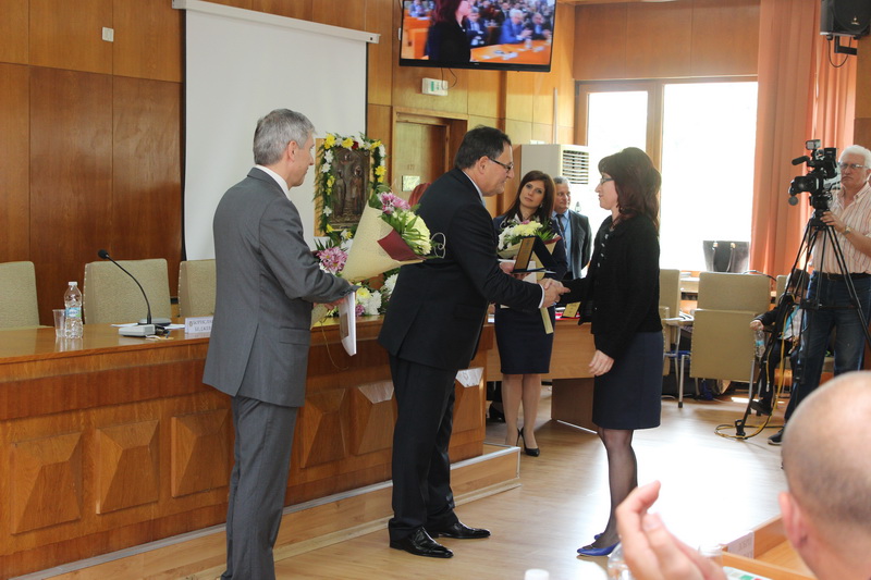 Кметът Любомир Христов и председателят на Общинския съвет проф. Борислав Беджев връчиха наградите за изкуство и културата.