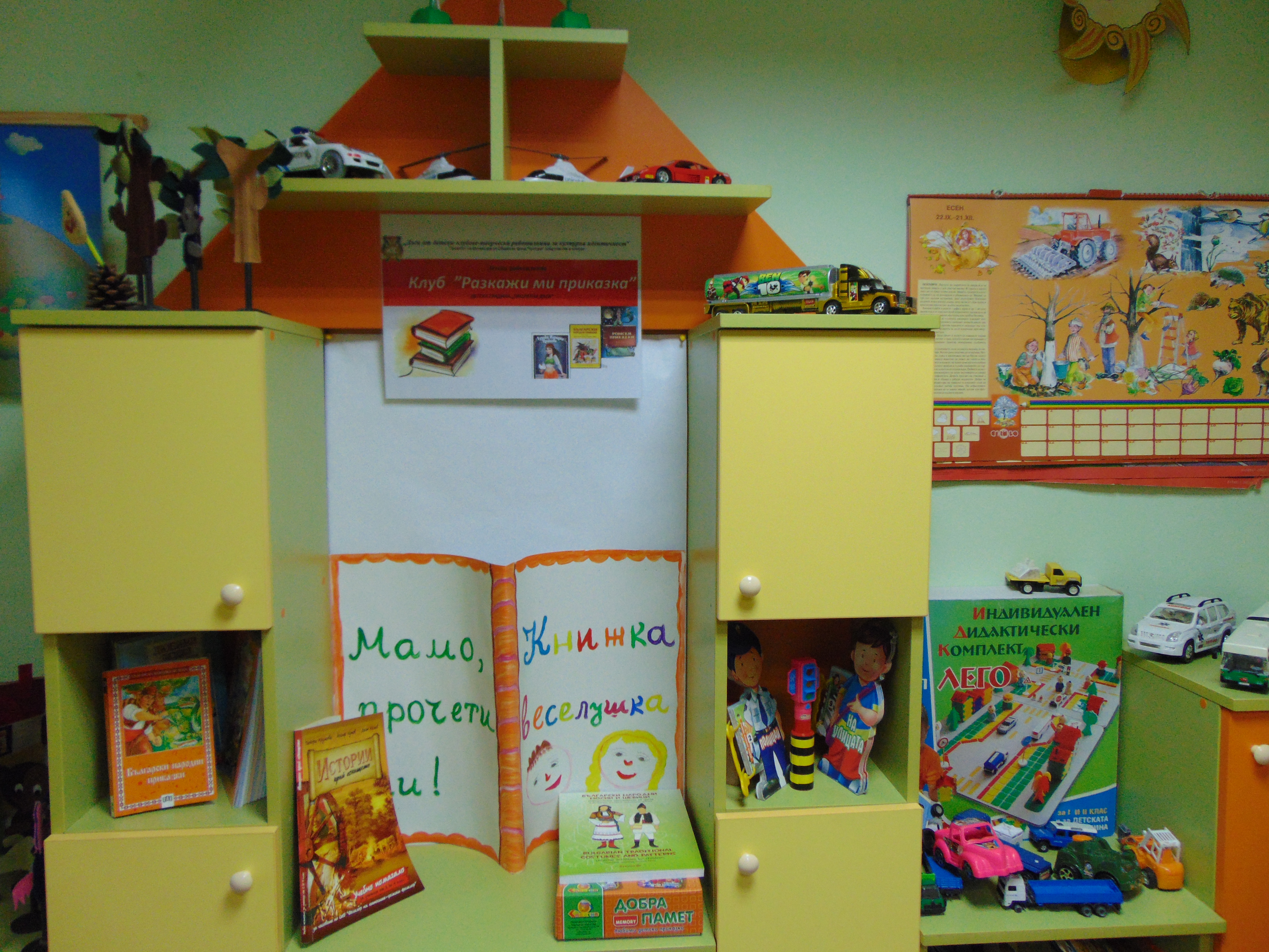 В занималните на детската градина са оформени кътове, в които са подредени нагледни материали за работа в различните направления и предмети, изработени по време на практическата дейност в клубовете.