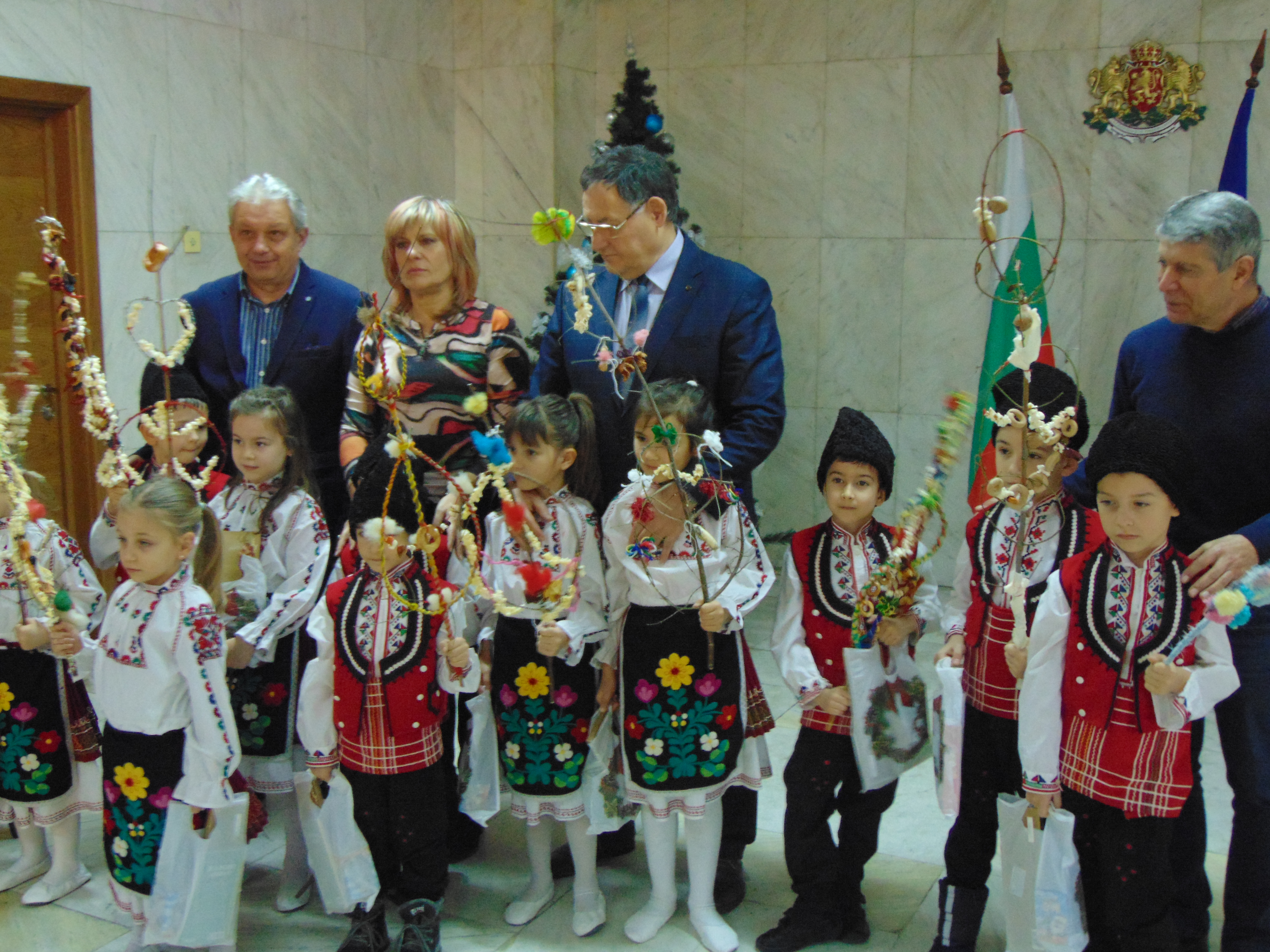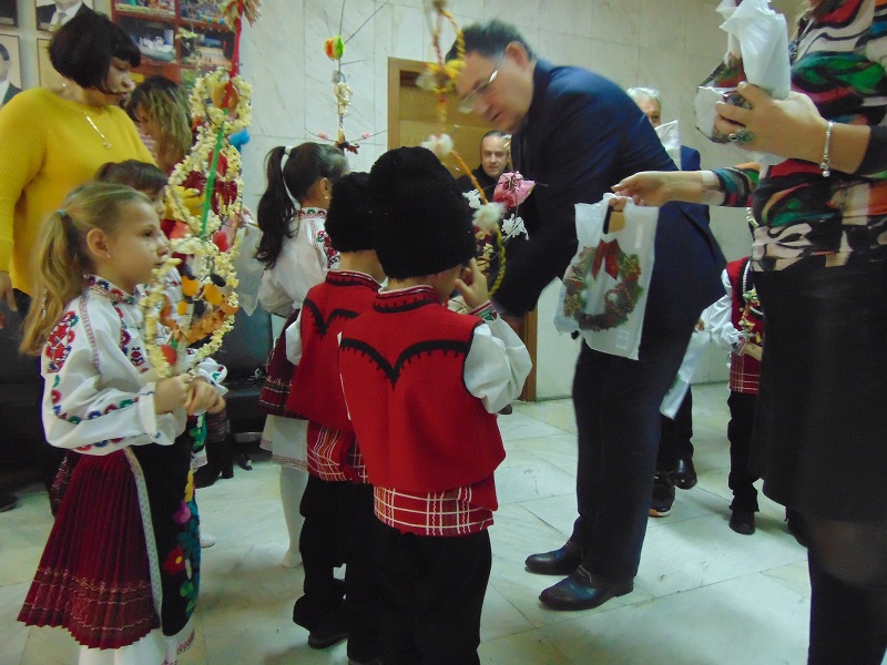 11 деца от детска градина „Изворче“ в Шумен бяха гости днес на кмета Любомир Христов и сурвакаха неговия екип. Облечени с народни носии, малчуганите представиха празнична фолклорна програма и поздравиха ръководството и служителите на администрацията по повод настъпването на новата година.
