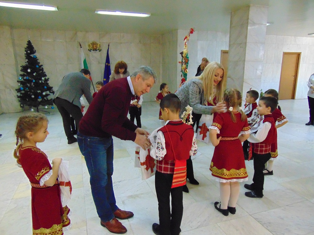 Кметът Христов благодари на децата и ги поздрави за чудесната програма, която изнесоха. Той им пожела да бъдат здрави и ги покани отново да му гостуват в общинската администрация. По традиция като подарък малчуганите получиха торбички с лакомства.
