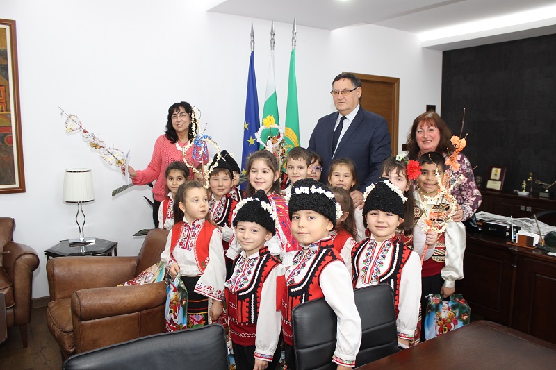 Деца от детска градина „Звънче“ сурвакаха кмета Любомир Христов и неговия екип