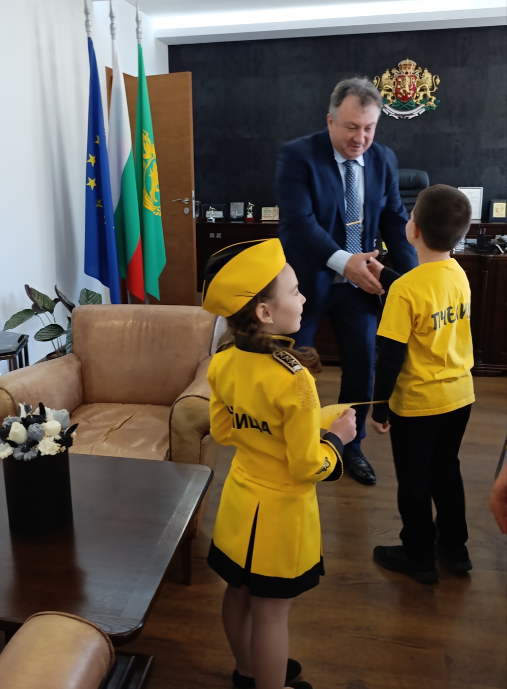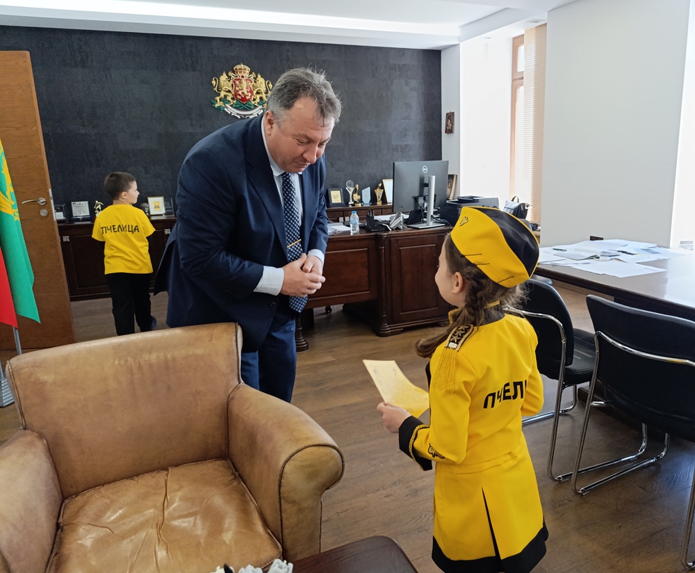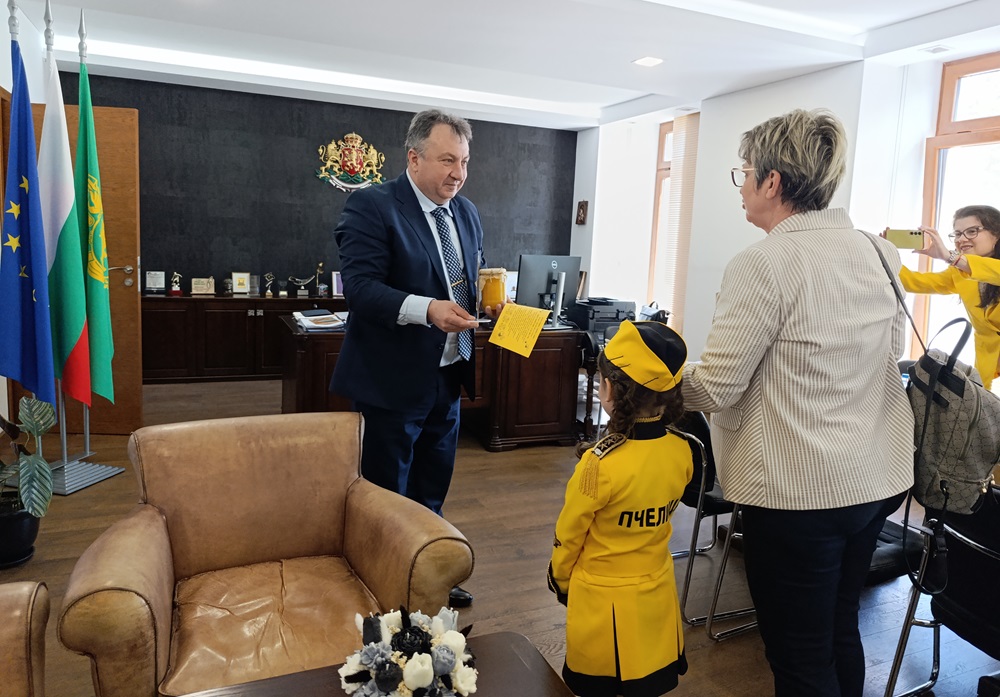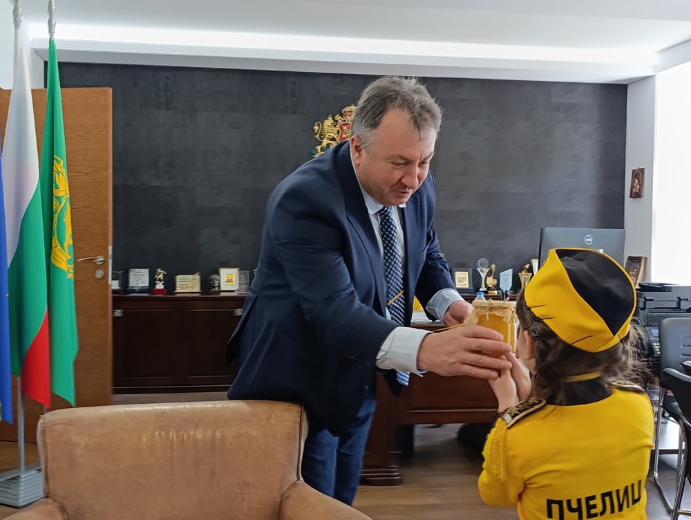 Деца от ДГ „Пчелица“ поздравиха кмета в неговия кабинет по случай Световния ден на пчелата