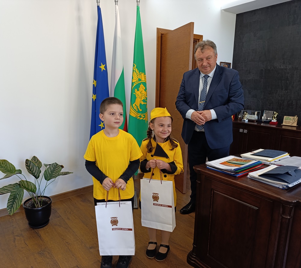 Кметът проф. Христо Христов благодари на двете деца за поздрава. Той им пожела един ден те да са бъдещите кметове на Шумен. Двамата с Димитър, който догодина ще бъде първокласник, се договориха да изпълнят заедно химна на Шумен „Оттука започва България“ на Асен Масларски.