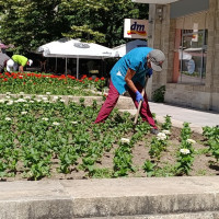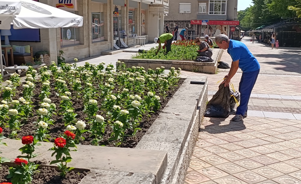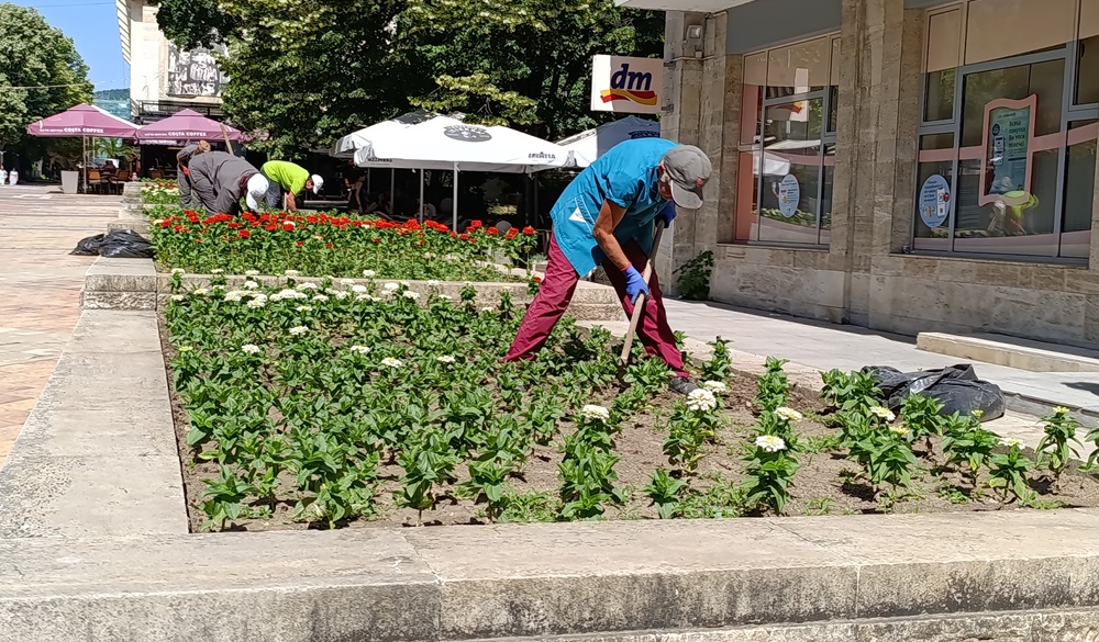 Групите по зацветяване поливат цветните алеи в централната градска част, а вчера оформяха живия плет по пешеходната зона от Руски паметник до площад „Кристал“.