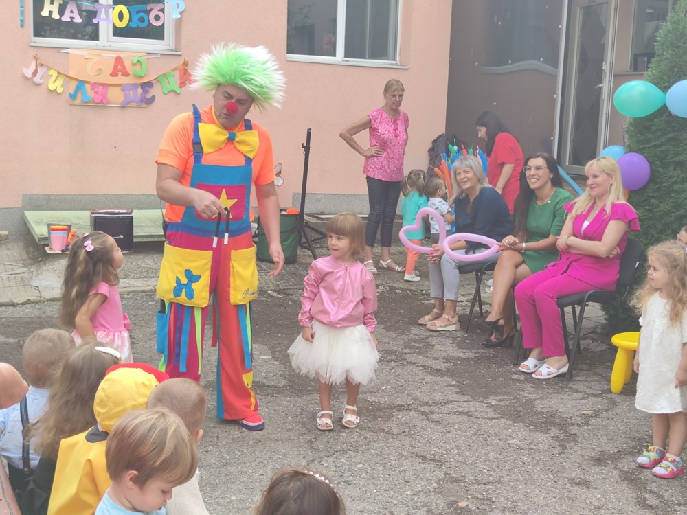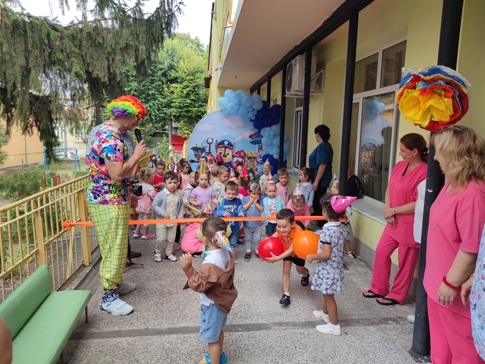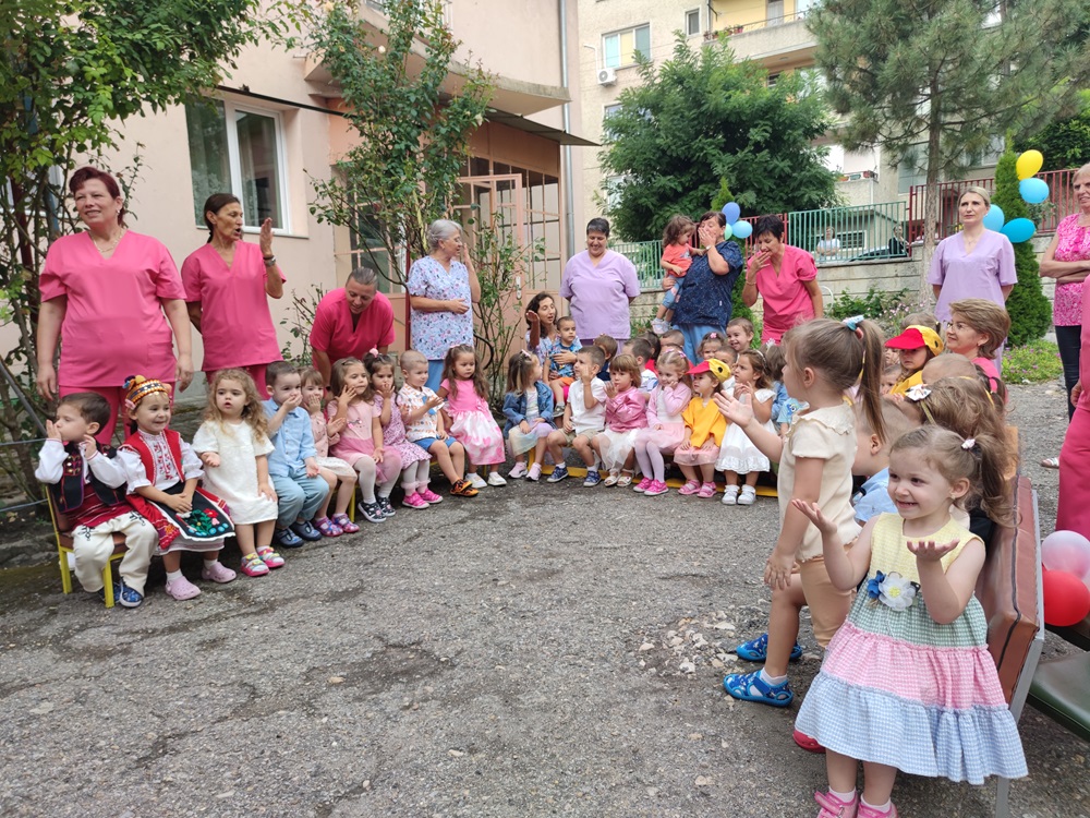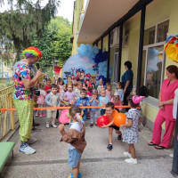 В празничния ден колективът на детска ясла „Радост“ пожела „На добър час!“ на своите 40 малки възпитаници, които ще пристъпят прага на детската градина. Музикално-танцови изпълнения и забавното шоу на клоуна Асен бяха част от тържеството.