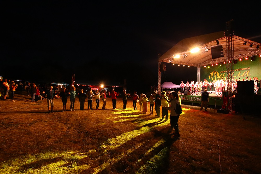 15 добруджански гайди от оркестъра към музикалната школа “Великов” в Силистра огласиха Шуменското плато тази вечер. Кукери от шуменското село Макак прогониха със звънци и хлопки злите духове от поляните край паметника „Създатели на българската държава“ и дадоха старт на фолклорния фестивал „Шумла“. Танцьори и певци от ансамбъл „Шумен“ разтуптяха сърцата на млади и стари. Пловдивската формация „Жарава“ покори публиката с енергията и магическото съчетание на музиката, която изпълняват.
