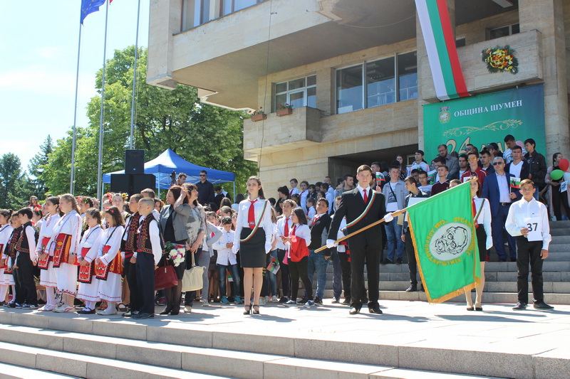 Деца, ученици, учители, културни дейци и родители преминаха в пъстро празнично шествие в Шумен за Деня на българската просвета и култура и на славянската писменост 24 май. Начело с иконата на Светите братя Кирил и Методий то беше предвождано от наградените отличници на випуск 2017, от кмета на града Любомир Христов, народни представители, представители на областната, общинската администрация и общински съветниции.