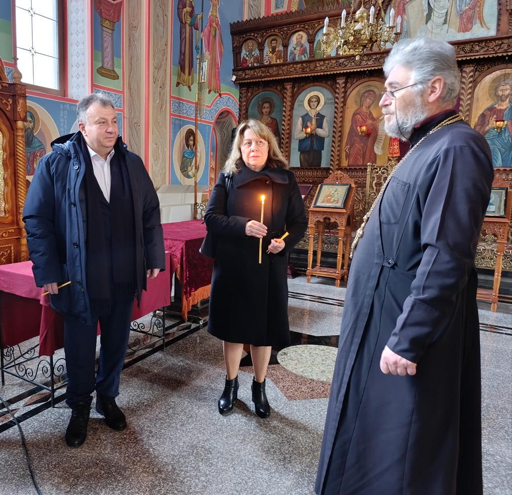 Представителите на община Шумен запалиха свещ в храма на светите Василий Велики, Григорий Богослов и Йоан Златоуст.