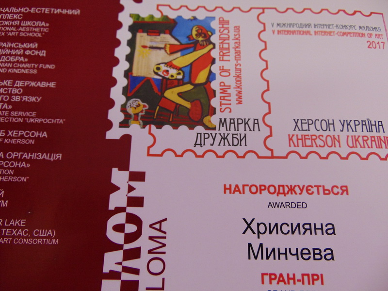Пощенска марка с рисунка на деветгодишната Хрисияна Минчева от Шумен отпечатаха в Украйна.Творбата на малката художничка бе отличена с Гран При на Международния детски конкурс „Марка на дружбата“.