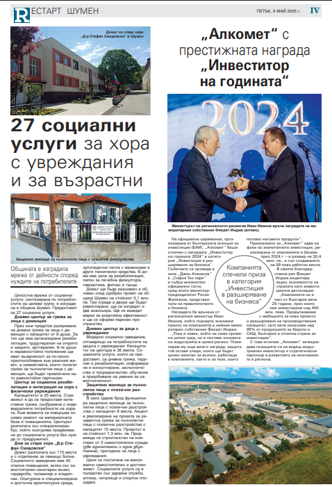 - “Алкомет” с престижната награда “Инвеститор на годината”.