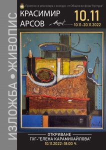 Изложба живопис на шуменския художник Красимир Арсов е подредена в Художествената галерия „Елена Карамихайлова“. Откриването на експозицията е тази вечер, 10 ноември, от 18.00 часа на първия етаж в галерията.