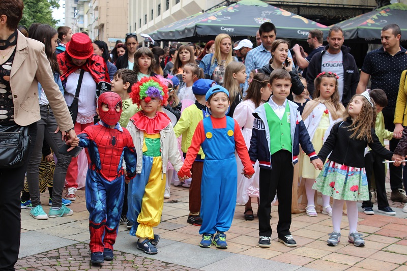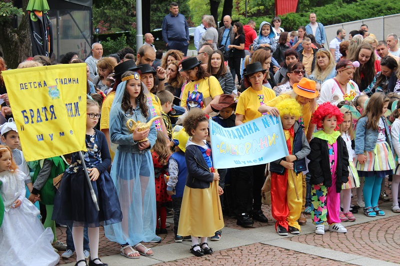Пъстро и цветно карнавално дефиле, в което се включиха повече от 500 деца, родители и учители от детските градини в града даде началото на празника. То бе водено от малките барабанчици от ДГ „Братя Грим“, следвани от мажоретките на ДГ „Смехорани“ и блоковете на 16 детски градини. Дефилето тръгна от площада пред театъра и продължи до Градската градина. По инициатива на Академика БГ всички присъстващи пред сградата на театъра рецитираха групово стихотворението „Аз съм българче“ на Иван Вазов.