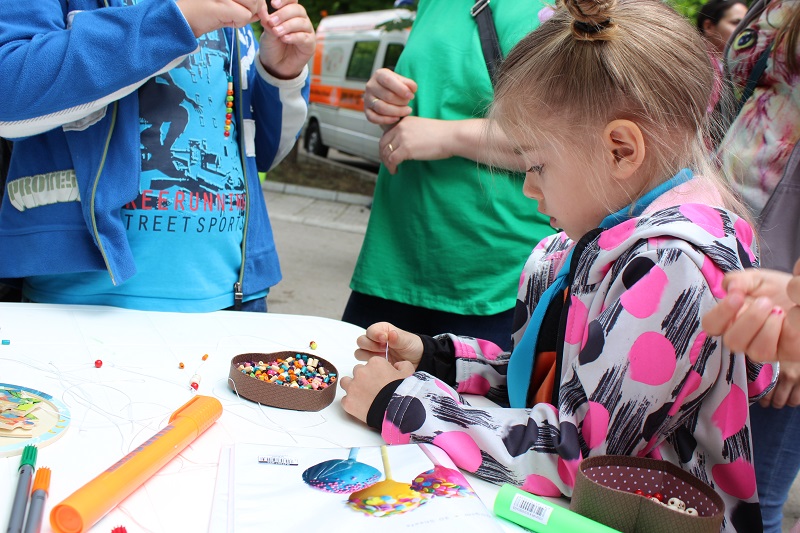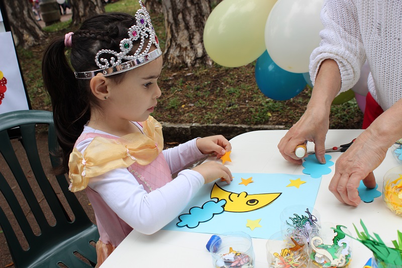 Също от 10.00 часа в Градската градина по традиция бяха подредени различни ателиета. Тържеството започна с изпълнения на детски музикални и танцови състави. На централната алея се проведе конкурс за рисунка на асфалт, а сръчни детски ръчички показаха как се изработват бижута, как се рисуват маски, а всички желаещи имаха възможността да се изявят на сцената на таланта. В ателието по засаждане на цветя малките цветари научиха ценни съвети как да засадят растенията. Децата майсторски правиха и хартиени фигурки – оригами и бодиарт в ателиетата, подредени в алеите на парка. Гост на тържеството бе зам.-кметът по образование и култура Найден Косев.