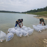Кметът и председателят на Общинския съвет в Шумен пуснаха първите личинки толстолоб и бял амур в яз. „Тича“