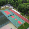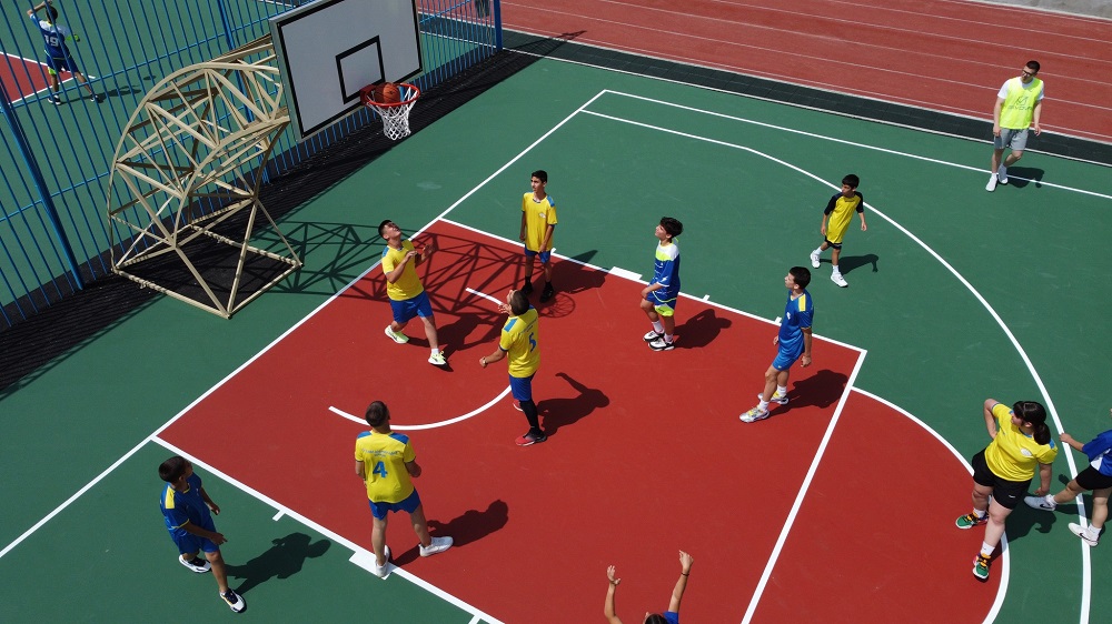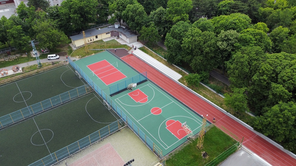 Спортният обект се намира в двора на училището. Той е разположен върху съществуващите спортни игрища в югозападната му част и е с приблизителна площ 1 149 кв. м. Реновирани са баскетболната и волейболната площадка, площадката за фитнес уреди, лекоатлетическата писта и трибуните. Подменени са настилките и спортните съоръжения.