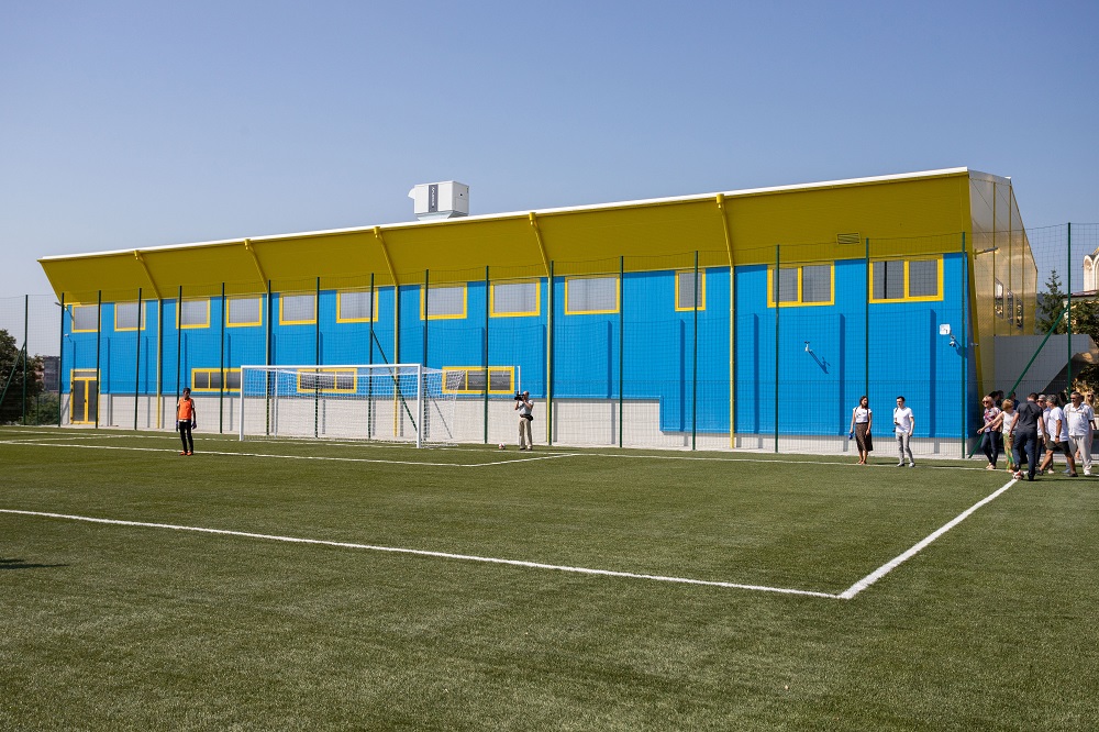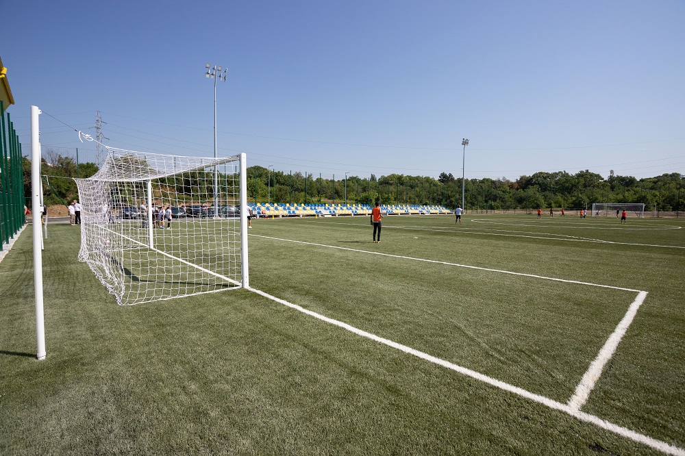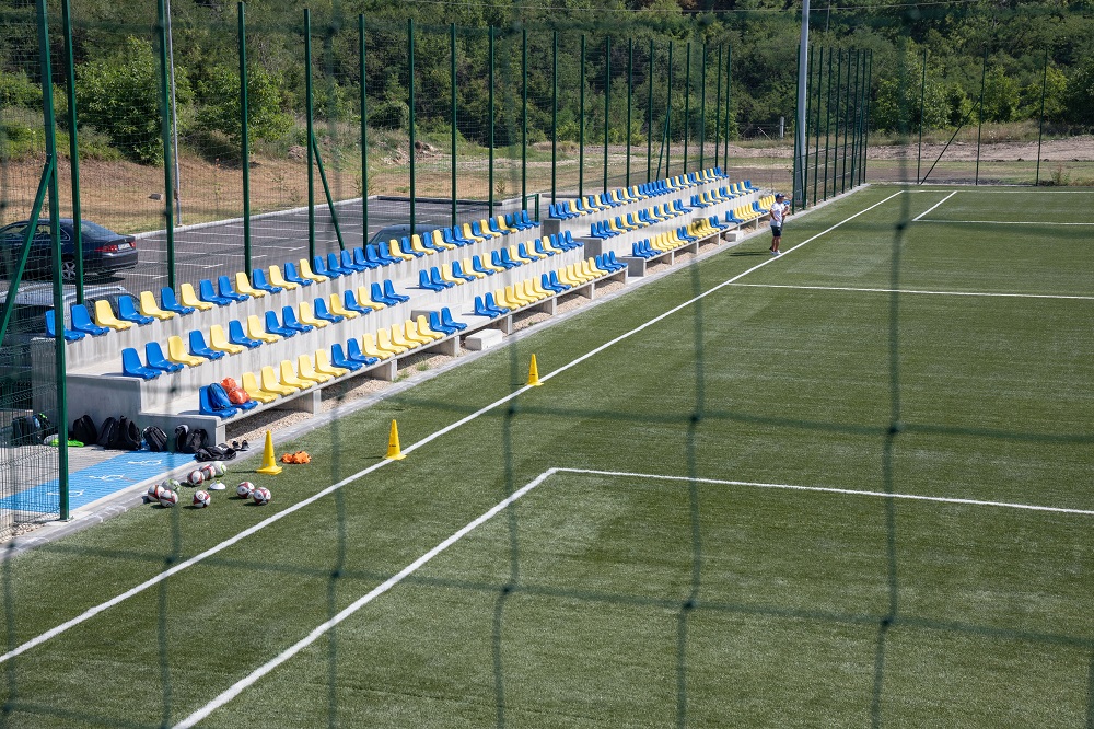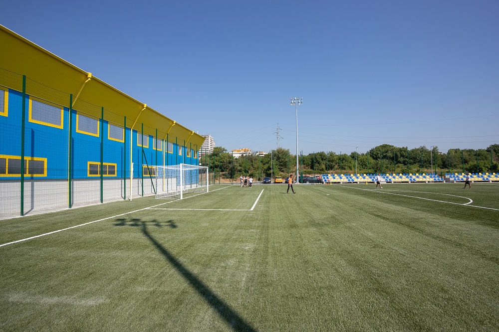 Новото футболно игрище е с размери 45,00х75,00. То е проектирано с всички необходими пространства, условия и техническо оборудване за провеждане на тренировки по футбол. Застлано е с изкуствена тревна настилка за спортни терени. Монтирани са и специални оросители, които да позволят използването на изкуствената настилка и в най-горещите летни дни. Има дренажна и осветителна система. На югоизточната страна са разположени 2 трибуни с общо 205 места, от които 4 – за хората с увреждания. Изградени са 37 паркоместа.