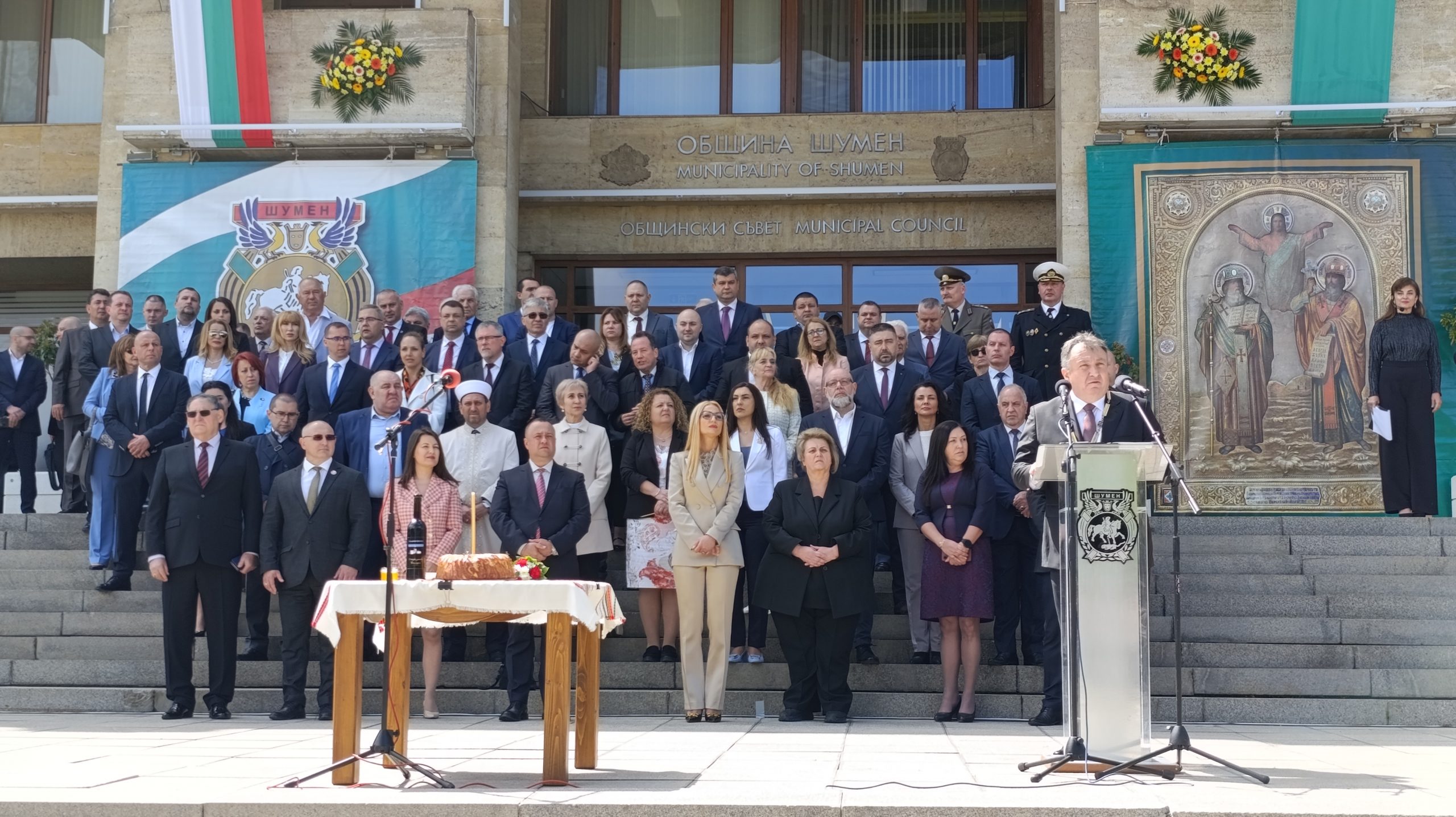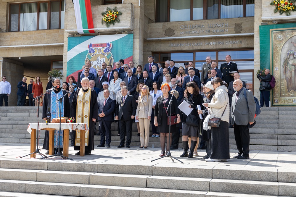 11 май честваме като празник на Шумен вече 25 години. От 25 години химнът на Шумен “Оттука започва България” ни изправя на крака, дори в моменти, в които сме изгубили пътя. 25 години в човешкия живот са зрялост, но в живот на един град са миг. В този миг, събрал в себе си столетия история, Шумен е дал началото на десетки първи за България събития, подчерта кметът.
