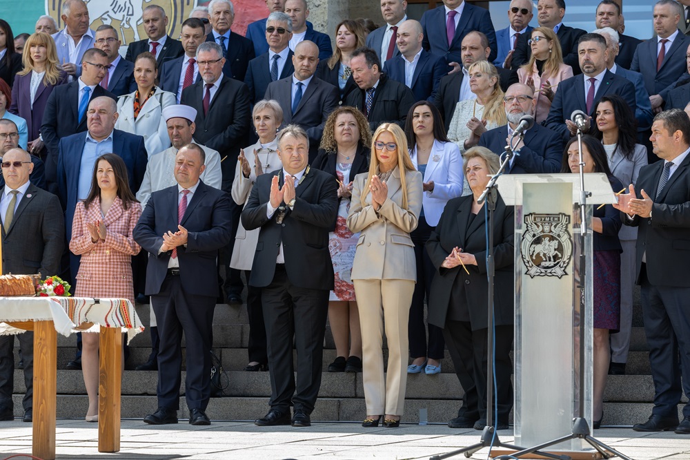 Шумен днес расте – той е град на шампиони – в икономиката, в спорта, в науката, в бизнеса, в културата, във високите технологии, по математика и информатика, в изкуствата. Децата ни превземат върхове, където и да отидат, а ние се целим в нови върхове, в името на достойно бъдеще, добави още той и напомни, че тази година Празникът на Шумен – 11 май, съвпада с две годишнини, които са слава и гордост за нас – 1160 години от покръстването и 1170 години от създаването на българската азбука. От тук е започнал духовният ръст на България. И вече повече от хилядолетие нашата шуменска земя пази неговия корен.