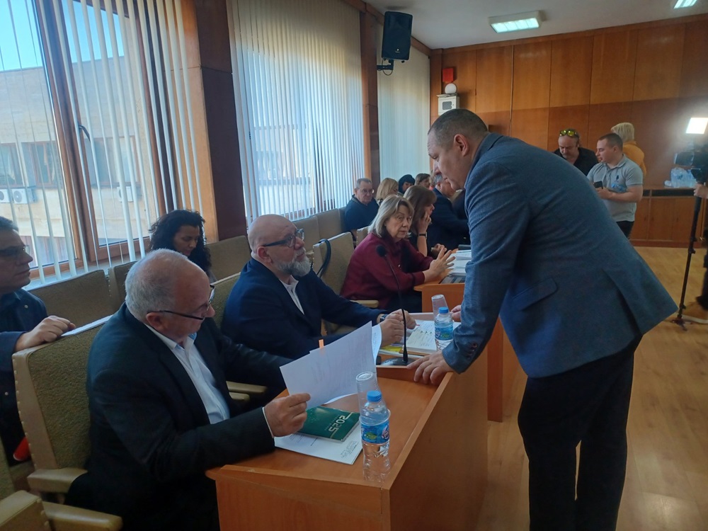 Сесията започна с едноминутно мълчание в памет на внезапно починалите общински съветници Димитър Александров и д-р Валентин Петров и с полагането на клетва от новите общински съветници Мелин Осман и Ива Вълчанова-Йорданова.
