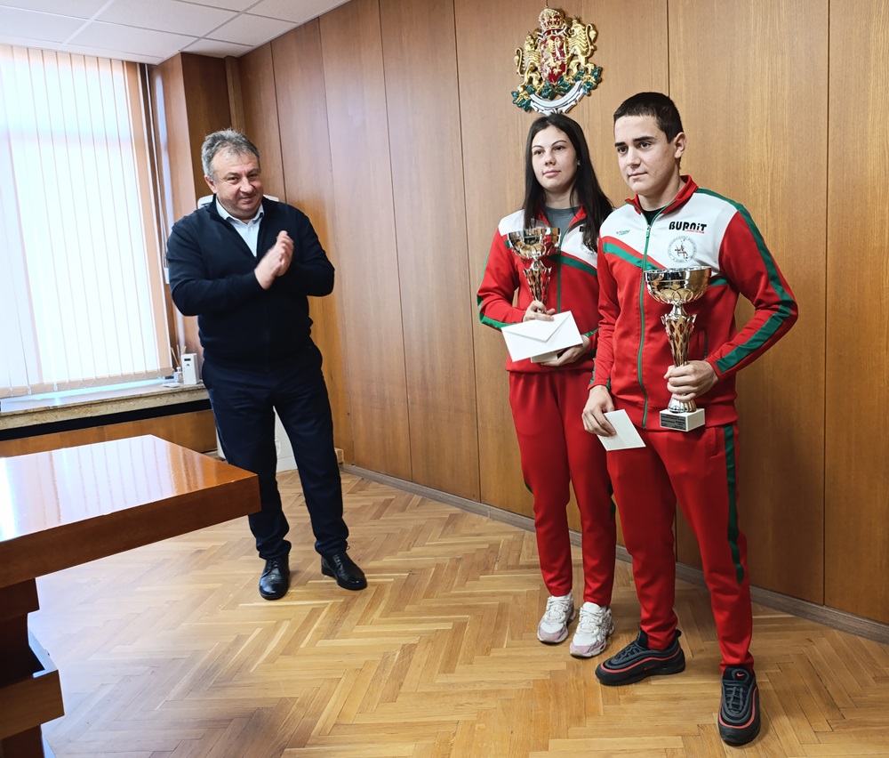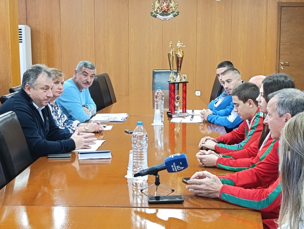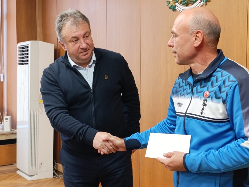 На среща в Община Шумен кметът проф. Христо Христов и заместник-кметът по „Образование и култура“ доц. Виктория Ковчазова поздравиха сребърните медалисти от Европейското първенство по карате „Киокушин“ Иван Иванов, Ивайло Иванов и Калоян Марчев, както и носителите на бронзови отличия от Балканиадата по борба – Емел Мустафова и Кристиян Василев.