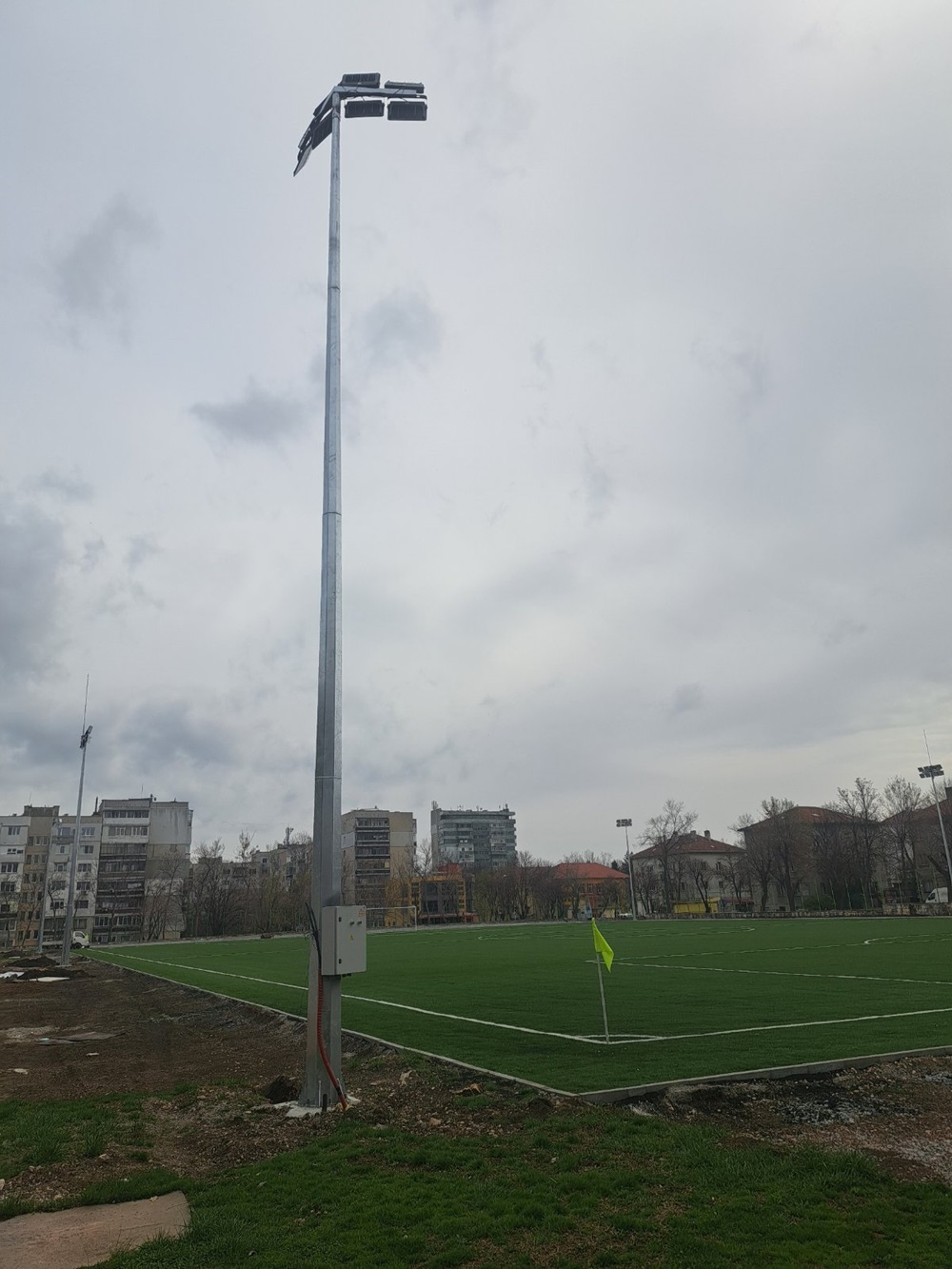 Припомняме, че по-рано по проект на БФС се реновира основното игрище с размери 64 на 94 метра на ученическия стадион. Поставена бе настилка от най-висок клас за изкуствена трева с висока гъстота. Дренажът на игрището с дълбочина около 50 – 60 см с динамична основа, която е водопоемаща и водоразпределяща.