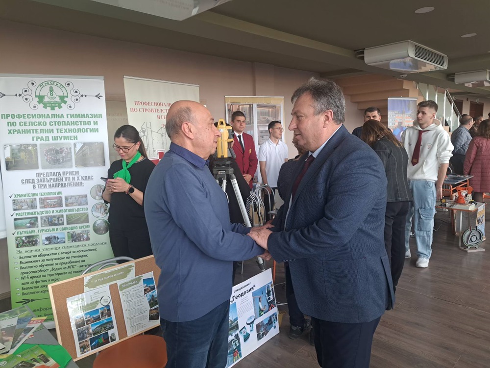Кметът подчерта, че за учениците е шанс да се срещнат с фирми на световно ниво, като тези, които са представени на днешния форум и поздрави участващите висши и професионални училища с техните постижения. Две от наградените компании на церемонията „Инвеститор на годината“ преди няколко дни са именно шуменските фирми „Фикосота“ и „Алкомет“, които са лидери в своите сектори, подчерта кметът. Условията, които те осигуряват, и репутацията им на водещи на световните пазари компании са изключителна възможност за развитието на младите хора в Шумен, посочи още проф. Христов.