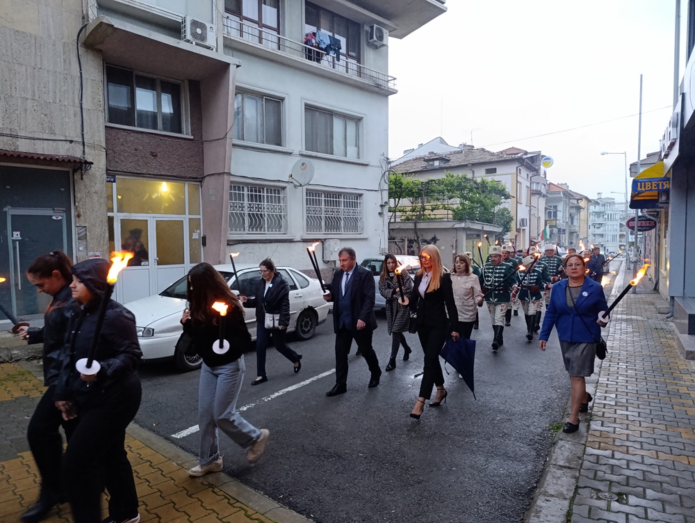 Кметът на община Шумен проф. Христо Христов, заместник-кметовете и председателят на Общинския съвет Ася Аспарухова се присъединиха към факелното шествие, посветено на 149 години от гибелта на Панайот Волов.