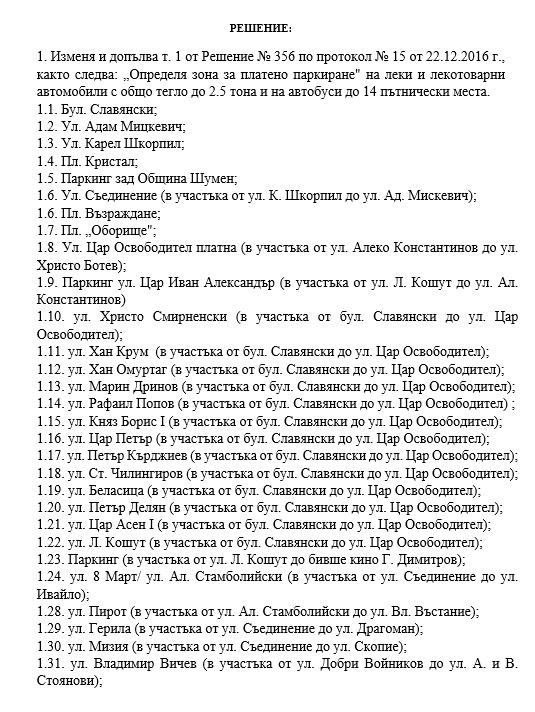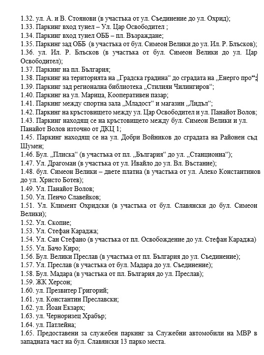 Общинският съвет прие по-голям обхват на зоната за платено паркиране – 65 участъка вместо предлаганите от администрацията 34 участъка в центъра на Шумен