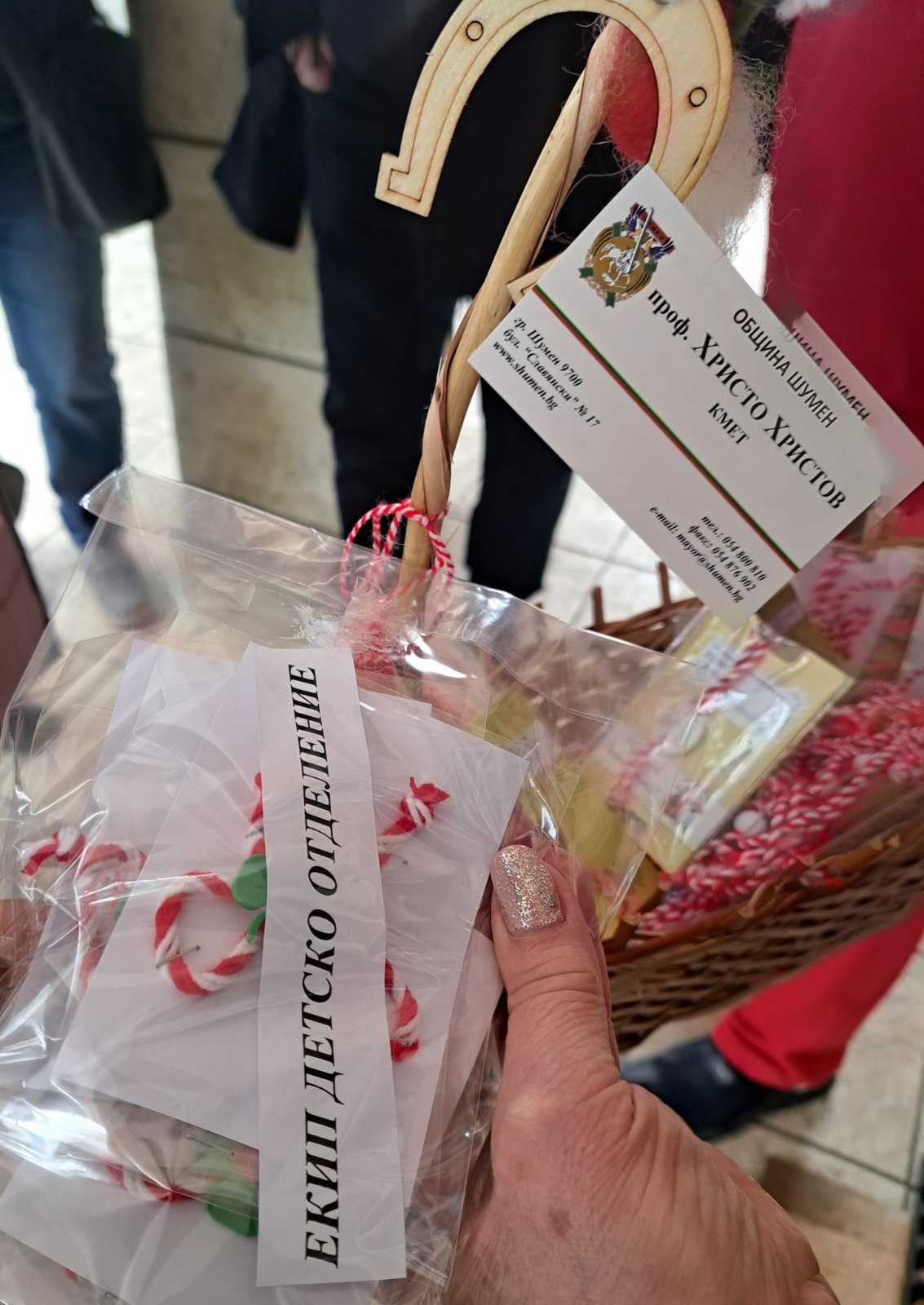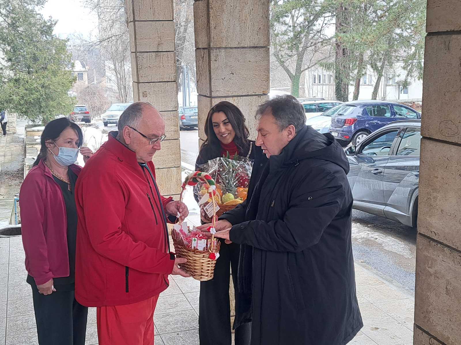 Кметът предаде мартенички, погачи и празнични украси на медицинските екипи в Неонаталогия и Родилно отделение, откъдето казаха, че днес се очаква раждането на първомартенско бебе.