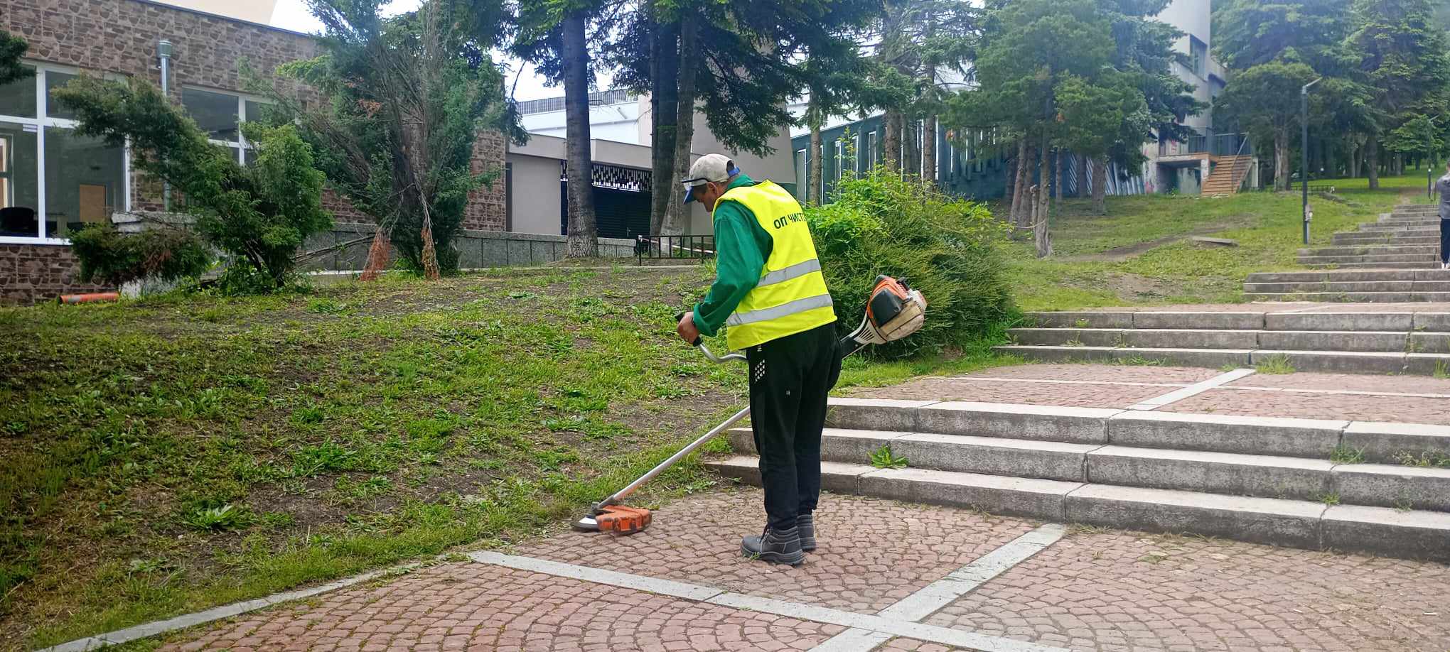 Днес се извършва косене на тревните площи и почистване на пространството между Летния театър и водната каскада.