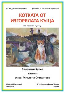 Изложба живопис под мотото “Котката от изгорялата къща” представя шуменският художник Валентин Кулев.