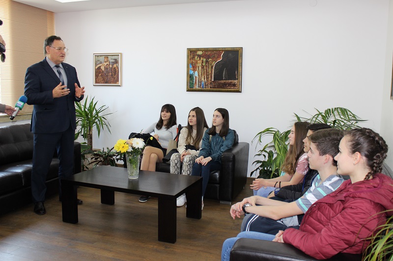 Любомир Христов поздрави учениците и техния ръководител Даринка Вълкова за отличните постижения. Той им благодари, че с представянето си прославят името на своето училище и на Шумен. „Вярвам, че след време някои от вас ще станат архитекти или проектанти и ще видя имената ви на различни красиви и модерни сгради, които са проектирани или построени от вас. Гордея се с вашите успехи.“ С тези думи кметът се обърна към учениците и отправи покана към тях да издигнат флага на града по време на официалната церемония за Деня на Шумен – 11 май.