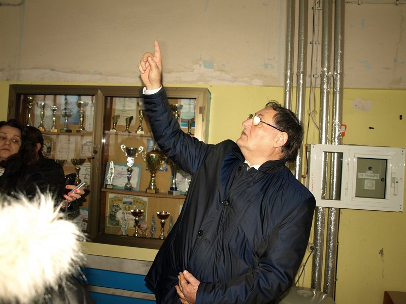 По-рано днес той покани представителите на медиите заедно да инспектират направеното от шуменската фирма „Прис“ ООД, която беше наета за извършване на аварийния ремонт. „Благодаря на родителите, които помогнаха през почивните дни да поставим мокета в залата, за да могат децата им още в началото на тази седмица да започнат тренировките,“ каза кметът по време на обиколката.