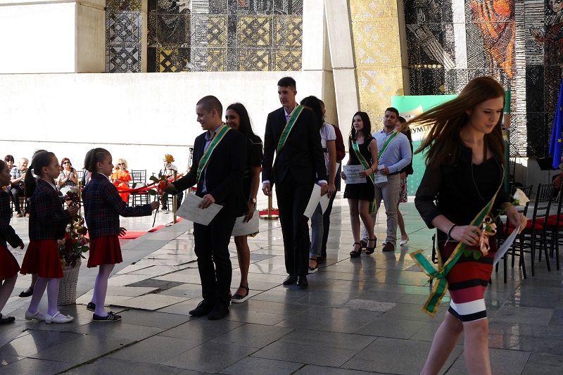 На специална церемония в навечерието на 24 май – Деня на българската просвета и култура и славянската писменост на Мемориалния комплекс „Създатели на българската държава“ под цветните мозайки днес кметът Любомир Христов връчи наградите на първенците от випуск 2018.