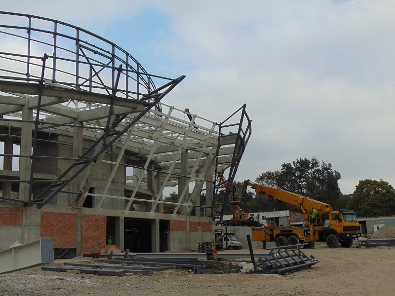 „В началото на месец октомври започва монтажът на металната конструкция, а от 25 септември ще стартират довършителните работи по помещенията – магазини, фитнес зали, съблекални. Едновременно се работи по всички видове инсталации – вентилации, ел, ВиК. В момента на строежа има 90 работници и до края на ноември ще затворим залата. След това продължаваме с останалите довършителни дейности. Ниските температури не ни притесняват, само дъждовете биха ни създали проблем.