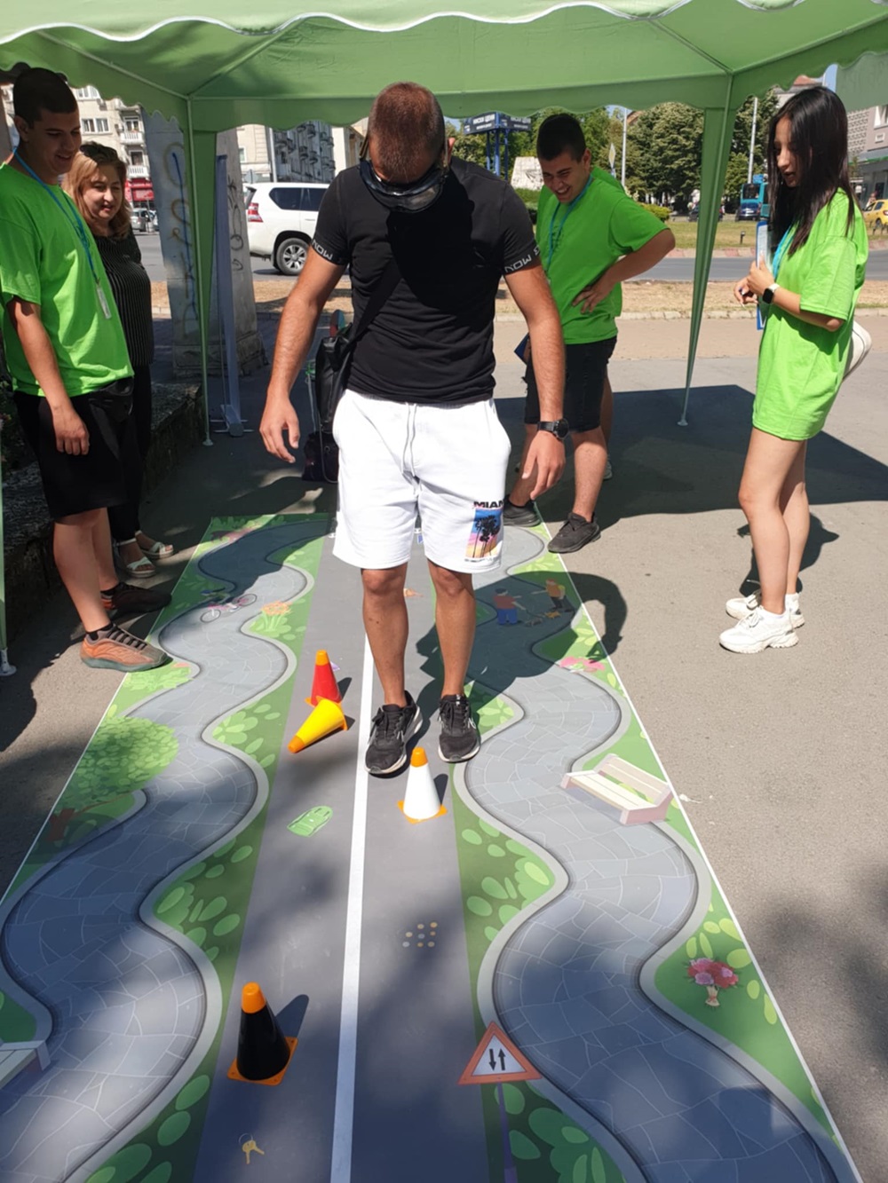 Специалисти от Превантивно-информационния център в Шумен предоставиха на желаещите да тестват симулационни очила за висока концентрация на алкохол и наркотици в кръвта. Очилата представят ефекта на дезориентация, намалена бдителност, забавено време за реакция, объркване и изкривяване на зрението. Променя се дълбочината на възприятие за разстояние, намалява периферното зрение, появяват се симптоми като: лоша преценка, трудно вземане на решения, двойно виждане и липса на мускулна координация.