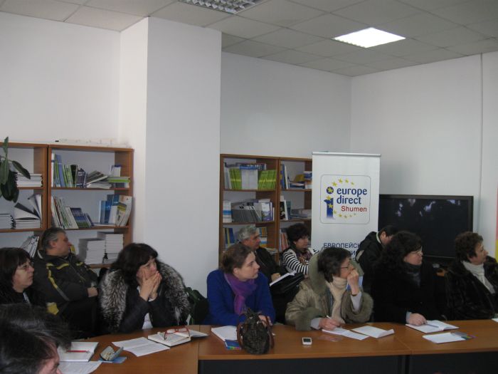 Днес в зала 363 на Община Шумен се състоя презентация и работна среща с петата фокус група във връзка са кандидатурата на Шумен за европейска столица на културата през 2019 година – учители и ученици. Лектор бе Любомир Кутин.
