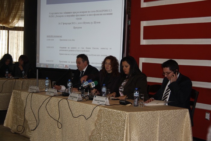 Лиляна Павлова очерта необходимостта от саниране на старите панелни блокове и възможностите за енергийна ефективност след това. Тя заяви, че държавата ще поеме половината от разходите по реализация на проекта, а общините ще могат да търсят начини да подпомагат гражданите. В своето изложение кметът на Шумен Красимир Костов очерта идеите на общината да бъде намаляван данък сгради за няколко години, топлофикационното дружество да инвестира част от средствата срещу включване на абонати в мрежата, както и общината да се погрижи за благоустройството на околоблоковите пространства след като приключи санирането на даден блок или секция.