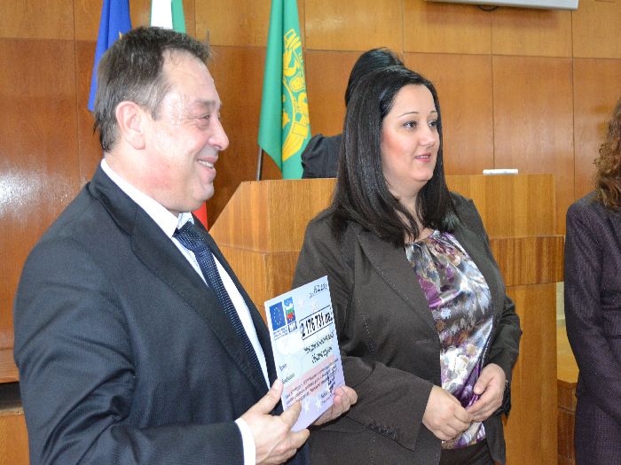 Министър Лиляна Павлова връчи чек за 2,2 млн. лв. на кмета на Шумен Красимир Костов