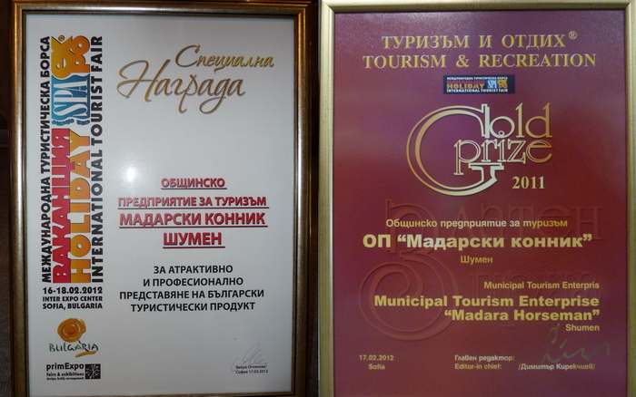 Две награди спечелиха шуменци на Международната туристическа борса „Ваканция СПА & Експо – 2012″, която се проведе в края на миналата седмица в София. Те бяха представени пред общинския съвет в Шумен от директора на общинското предприятиe за туризъм „Мадарски конник" Добромир Жеков и от шефа на Регионалния исторически музей Георги Майсторски.