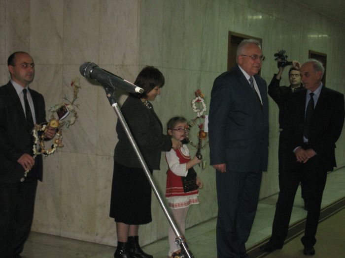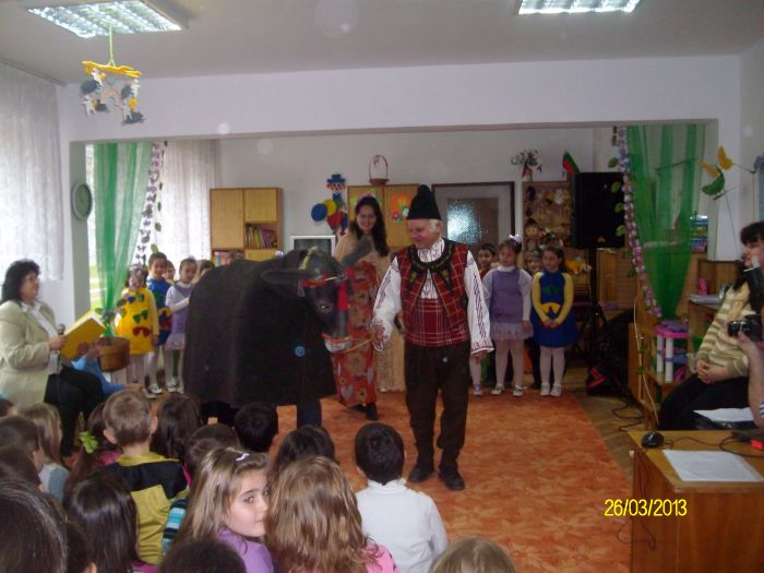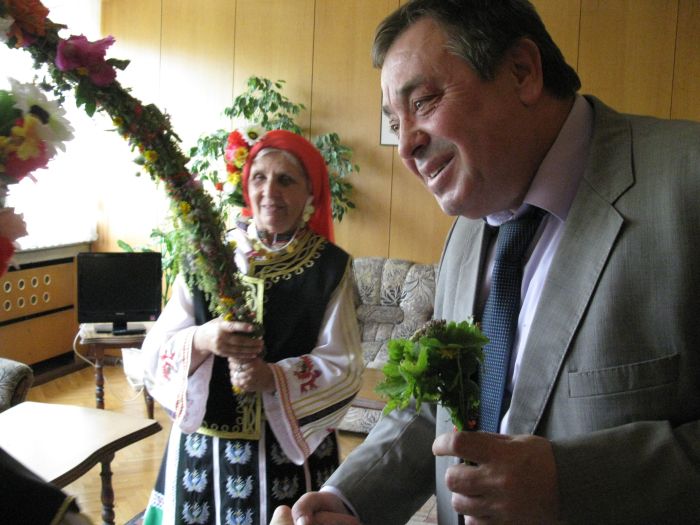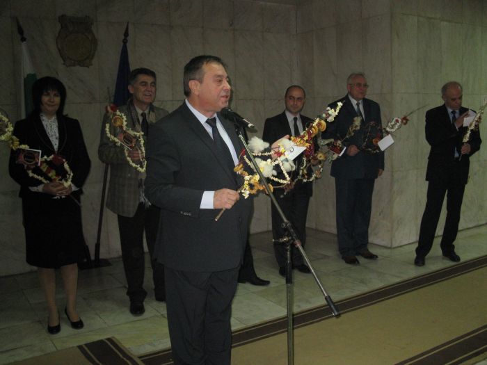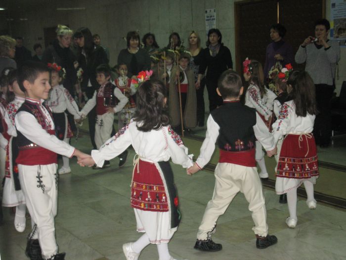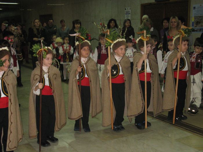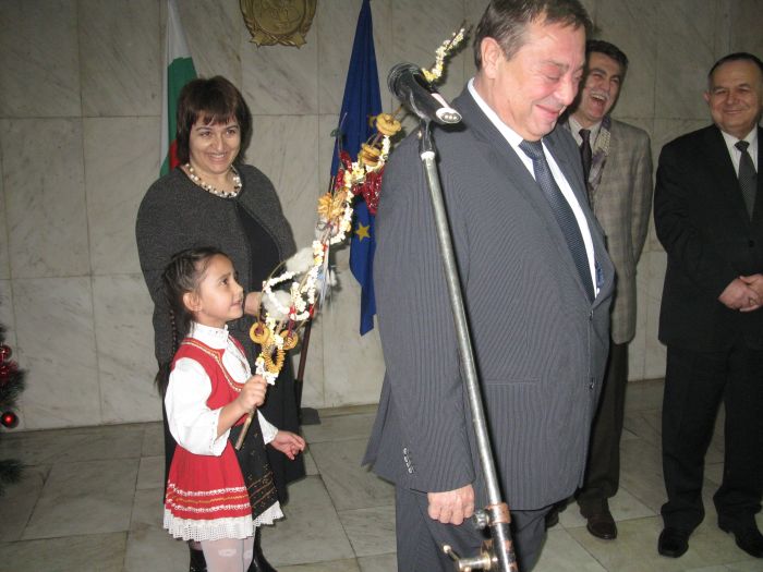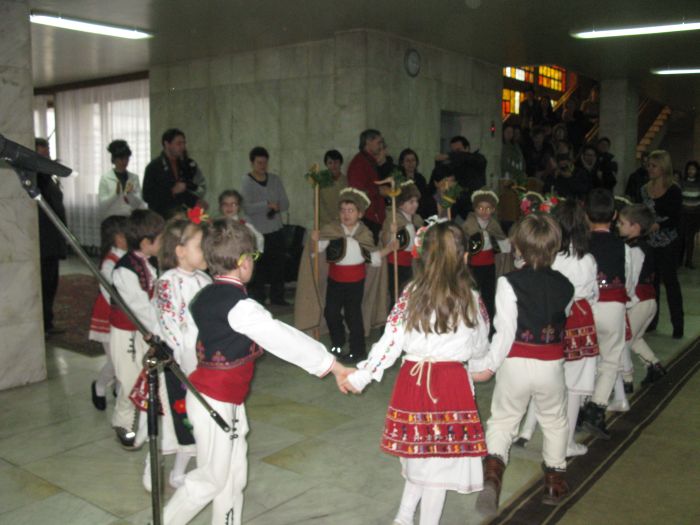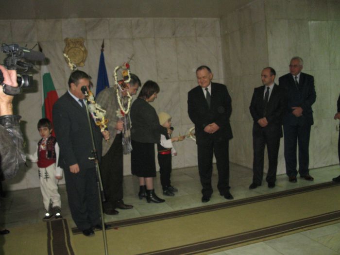Децата сурвакаха кмета Красимир Костов, неговите заместници и председателя на общинския съвет проф. Георги Колев. „Червена ябълка в градина, много здраве за кмета да има. Европейски проекти да усвоява, града да разкрасява. Шумен да расте и хубавее, с него кметът ни да се гордее", беше пожеланието за Красимир Костов.