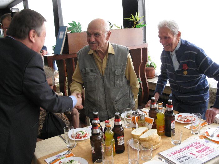 От името на Областния съвет на ветераните поздрав поднесе Иван Бончев, почетен гражданин на Шумен. „Днешната среща показва, че макар да намалява броят на ветераните, те не са забравени и техният принос е оценен по достойнство", каза Бончев и пожела живот и здраве на всички.