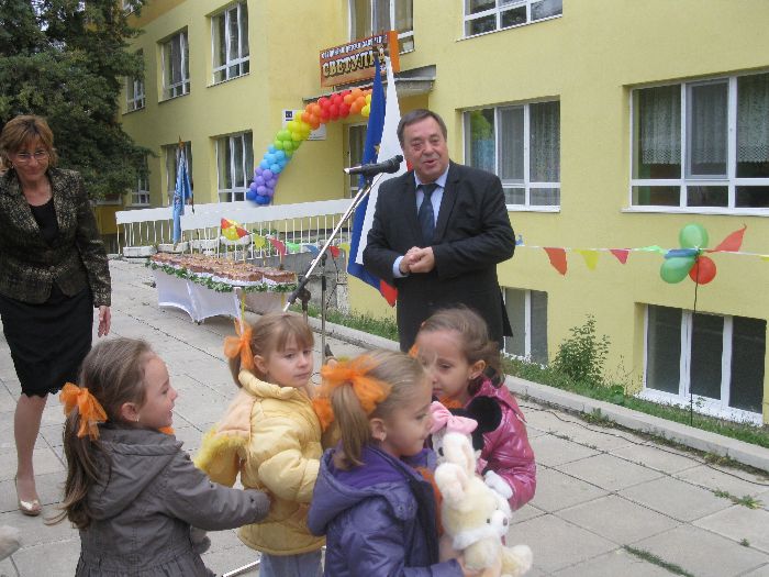 „Изключително приятно съм изненадан от умните и закачливи пожелания. Успяхте да ни отупате по всички направления и то много закачливо и уместно. Оградата и детските съоръжения в детската градина ще направим. Ще продължим нашата грижа за условията, в които вие израствате", каза в приветствието си към децата кметът Красимир Костов и пожела здраве, весели игри и много смях на малчуганите през новата година.